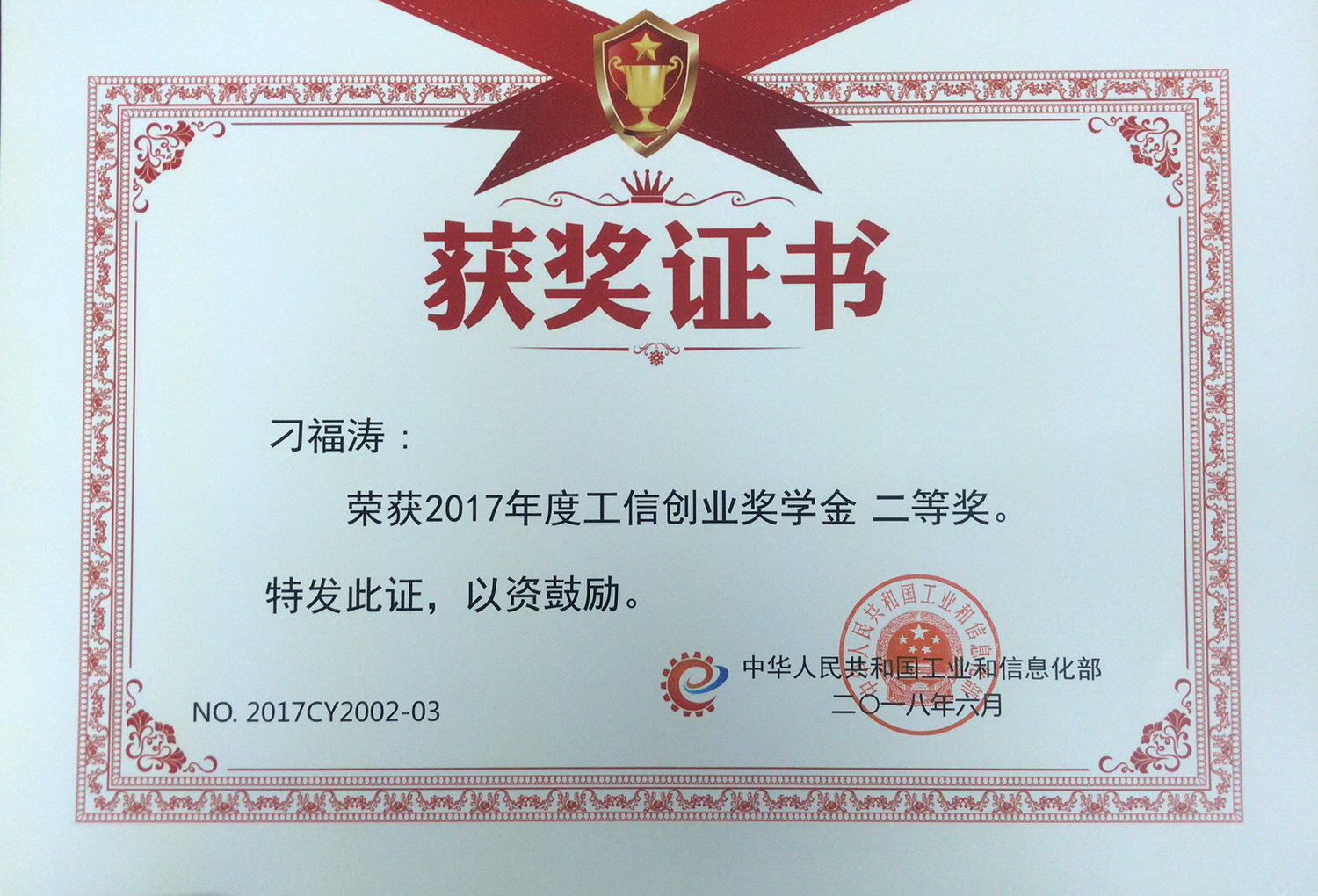 工業(yè)和信息化部日前公布2017年度中國高校創(chuàng)新創(chuàng)業(yè)獎(jiǎng)學(xué)金評(píng)審結(jié)果,根據(jù)《工信創(chuàng)新創(chuàng)業(yè)獎(jiǎng)學(xué)金管理辦法(試行)》(工信廳人〔2016〕173號(hào)),經(jīng)部獎(jiǎng)學(xué)金評(píng)審工作領(lǐng)導(dǎo)小組審定,我公司與北京航空航天大學(xué)聯(lián)合開發(fā)的《工業(yè)視覺檢測(cè)及生產(chǎn)追溯系統(tǒng)》項(xiàng)目,榮獲全國高校創(chuàng)業(yè)類二等獎(jiǎng),我公司兩名員工獲得了獎(jiǎng)狀及證書。