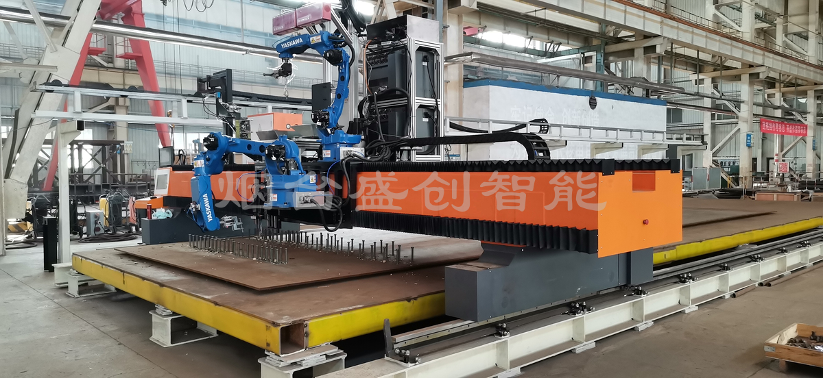 受國家電投山東核電委托,我公司研發(fā)及工程技術(shù)團(tuán)隊(duì)在歷時(shí)一年不懈努力下,近日成功研發(fā)出國內(nèi)首臺(tái)剪力釘自動(dòng)焊機(jī)器人設(shè)備,并在山東核電設(shè)備公司順利落地投入使用。該設(shè)備解決了傳統(tǒng)剪力釘焊接領(lǐng)域由人工作業(yè)帶來的勞動(dòng)強(qiáng)度大、作業(yè)效率低下、焊接質(zhì)量差、焊工難招工等問題,填補(bǔ)了國內(nèi)剪力釘焊接領(lǐng)域內(nèi)一項(xiàng)技術(shù)空白。